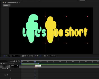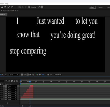 Starting a new comp: I began by creating a fresh composition with only two text layers instead of many individual ones, aiming to keep the same amount of text but in a cleaner structure.