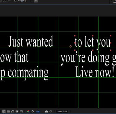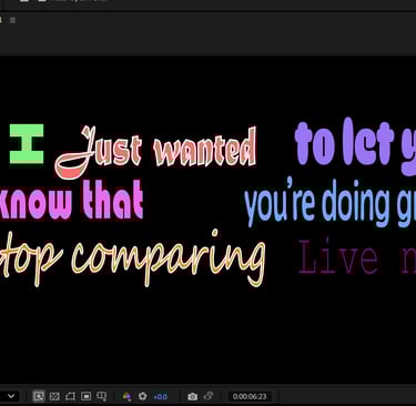 Working with audio later in the project marked a turning point. Syncing text with sound gave me a deeper appreciation of rhythm and pacing. The process shifted my focus from purely visual timing to a more holistic experience, where sound and image interacted to create impact. This made me see motion graphics as more than moving visuals; they became a way to shape emotion and immersion.