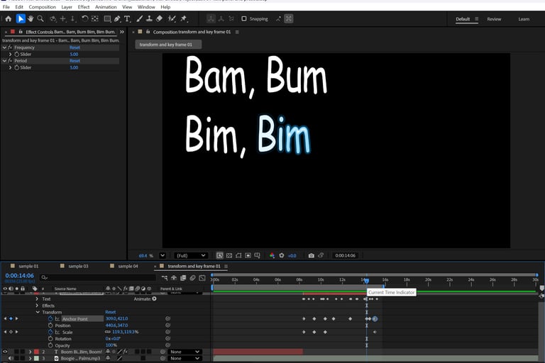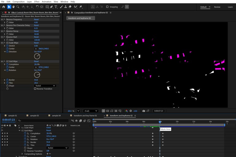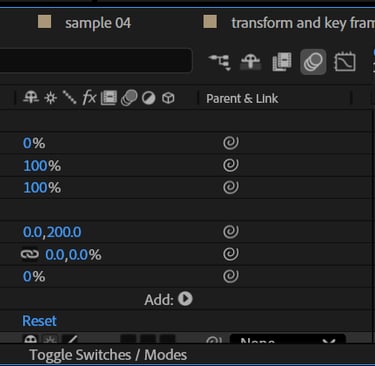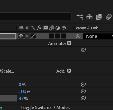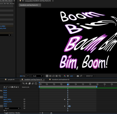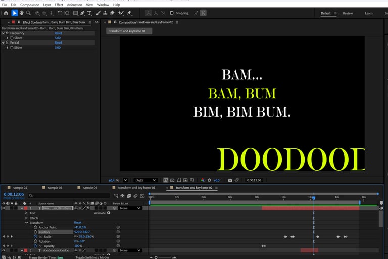 Experimenting with transformations: To expand the effect, I animated Scale and adjusted the Anchor Point, creating variations for more dynamic movement.