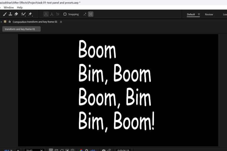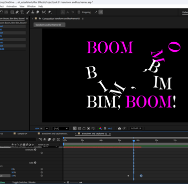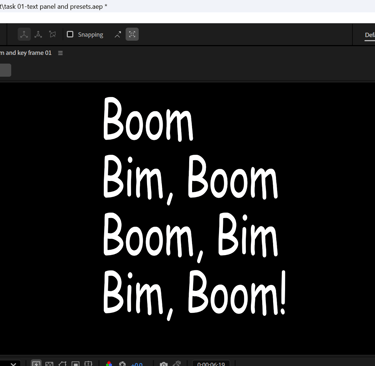 week 06, Assignment 02 Task 01: Animating 2D text in After Effects