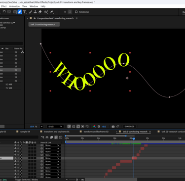 I also conducted research and followed three tutorials to extend my experimentation in After Effects: Fade Up, Bounce Animation, and Text on Path.